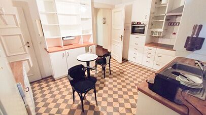 Das betrifft zum Beispiel den bestehenden Parkettboden, auf dem das Parkett nur fließend verlegt wird – ohne zu kleben oder Bestand herauszureißen. Zum Glück gibt es in der Familie einen Parkettlegemeister und Schreiner – da konnten sie auf fleißige Unterstützung zählen und tatsächlich vieles am Haus in Eigenleistung erbringen.