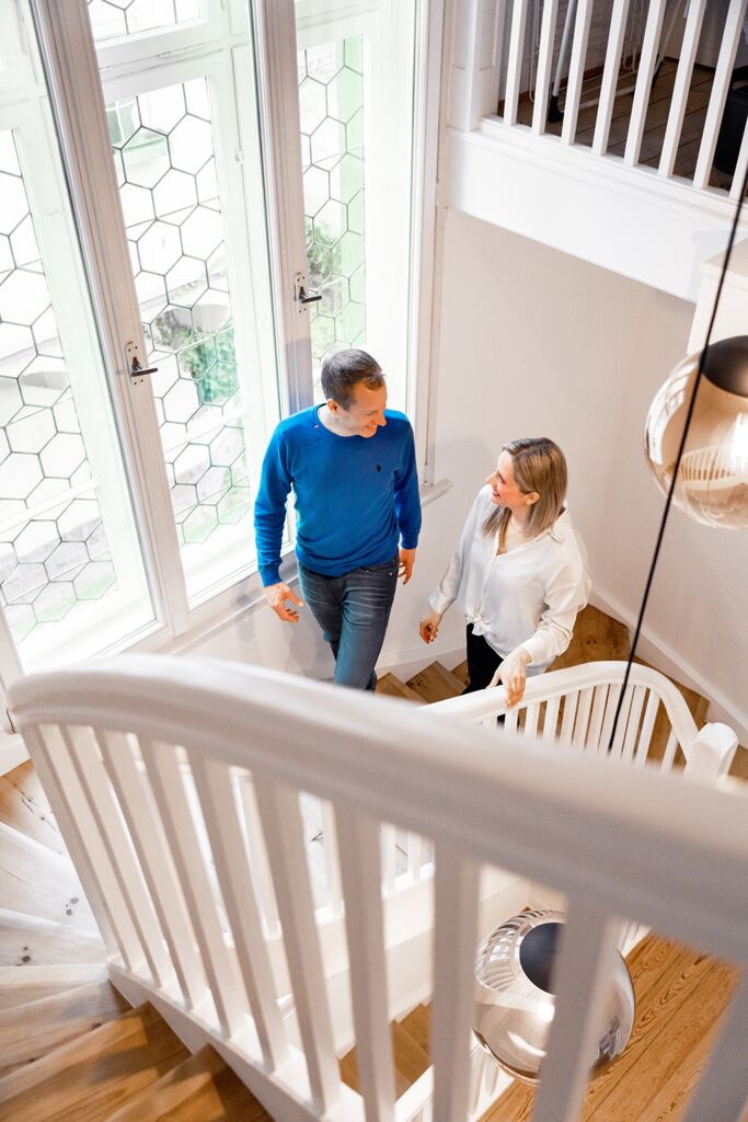 „Das neue Bad, das wir aus einem bestehenden Zimmer quasi neu geschaffen haben, gefällt uns sehr gut“, freut sich Fabian. Und Sabrina ergänzt: „Für mich ist es definitiv der Flur, also der große Treppenbereich – dass man so einen schönen Blick nach oben hat und es recht frei ist.“