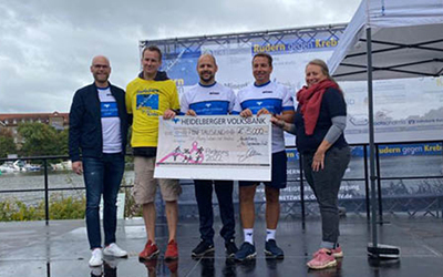 Aktiv gegen Krebs: Das traditionelle Rudern gegen Krebs ging im September 2022 in die elfte Runde. Organisiert und veranstaltet von der Stiftung Leben mit Krebs, dem Nationalen Centrum für Tumorerkrankungen Heidelberg und der Rudergesellschaft Heidelberg 1898 e. V. Doch auch, wer nicht rudert, kann mitmachen: Beweg dich gegen Krebs hat sich während der Pandemiejahre bewährt. Mit einer App können vier Wochen lang Bewegungsstunden gesammelt werden. Allein beim Rudern auf der Neckarwiese kamen 315.141 an Ergometern gemessene Meter zusammen. Die Heidelberger Volksbank rundete den „erruderten“ Betrag von 3.151 Euro auf eine Förderung von insgesamt 5.000 Euro auf.